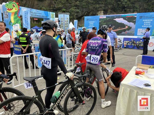 检录区前,来自四川、重庆、云南、贵州、港澳台等全国十余个省市地区的选手和来自英国、加拿大、柬埔寨、越南等国的13名外籍选手已陆续抵达,总人数近千人,他们身着各色骑行服,精神抖擞地排成长队,在微微秋凉中耐心等候检录。每位选手的脸上都写满了专注与期待,旁边的舞台上,街舞等表演正伴随着动感节拍火热登场,跃动的旋律提前点燃了现场的激情,选手们不时抬头望向起点处的计时器,跃跃欲试的气氛在湖畔弥漫。